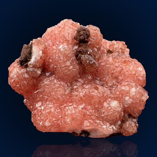 A highly lustrous, salmon-pink rhodochrosite crystal cluster from this classic South African locality, known for producing some of the finest specimens of the species! Excellent contrast between the rhodochrosite crystals and the dark black-brownish matrix!