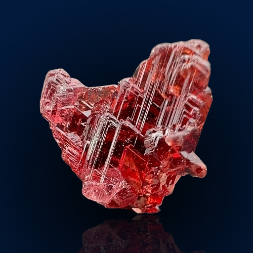 A Navegadora garnet! Gemmy, lustrous with a great vivid red color! The multi-stepped faces are the result of etching processes and disperse light all around! A highly aesthetic thumbnail!