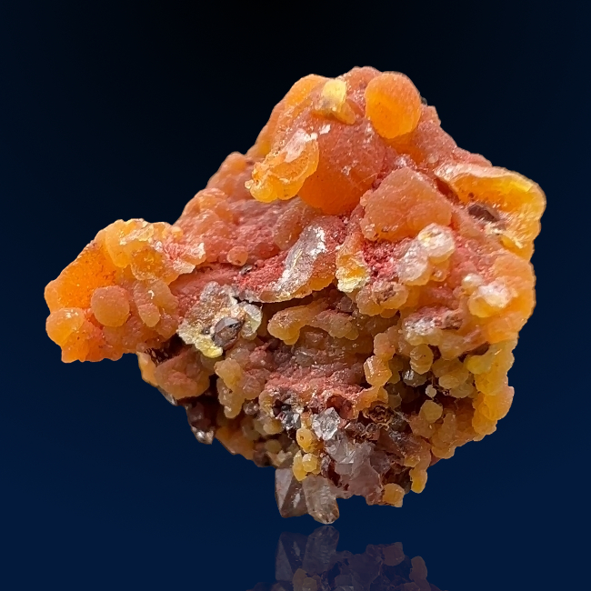 Here’s a fine specimen of botryoidal mimetite accompanied by massive red-orange minium — an eye-catching association of lead mineral species from Iran. Older label included with the specimen.