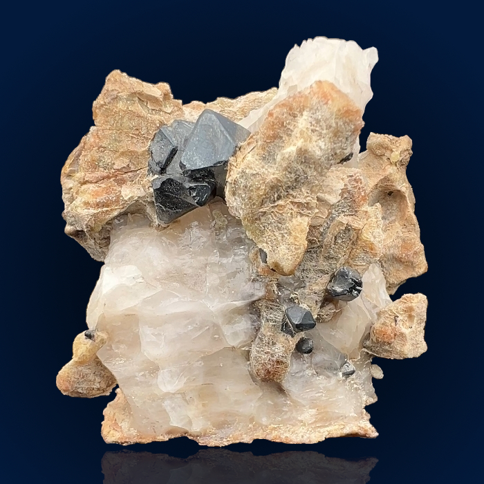 The Franklin mining district is one of the true “celebrity” localities in the world of mineralogy and mineral collecting. The area sits atop an ore deposit historically exploited for zinc. What made the mine famous is the remarkable abundance of rare mineral species found there—some occurring only at this locality and nowhere else on Earth—as well as its spectacular array of fluorescent minerals, which earned Franklin the moniker “Fluorescent Mineral Capital of the World”. The specimen shown here consists of well-formed black octahedral crystals of franklinite (type-locality) with a metallic lustre, associated with white calcite. When tested under 395 nm ultraviolet light, the calcite fluoresces a red-orange color and then displays a degree of phosphorescence afterward. A small label that was attached to the specimen (now detached from the specimen but will be included with it upon shipping) notes that it originated from F. Fournace [sic]. This detail allows us to determine that the specimen was mined before 1913, the year when the locality’s name changed from Franklin Furnace to Franklin.